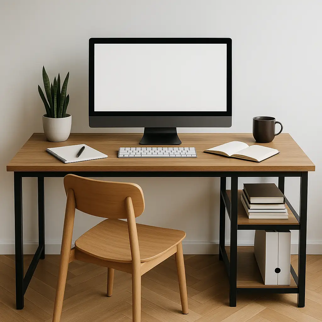 A clean surface invites creativity. A neutral felt or vegan leather desk mat pairs beautifully with a slim pen tray, keeping your writing tools within reach and your desk visually calm.